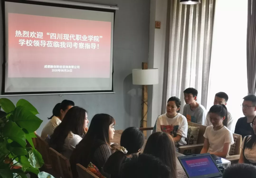 8月26号上午9点,,,,“四川现代职业学院”纪委书记、、工会主席程勇,,,,学生处处长蒋建华,,,教务处副处长周昱宇,,,专业建设处长李成,,,,学院办公室副主任刘学,,,,财经系副系主任杜春莅临成都融创财经咨询有限公司考察指导。。。